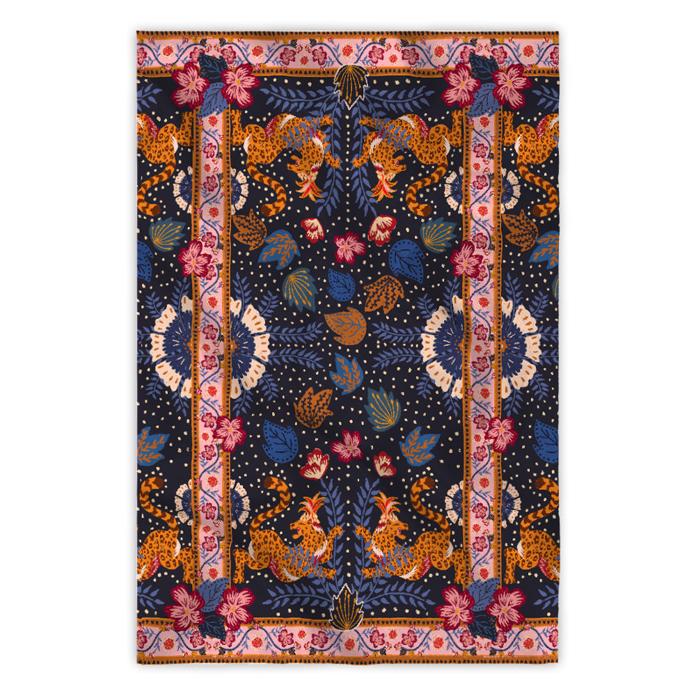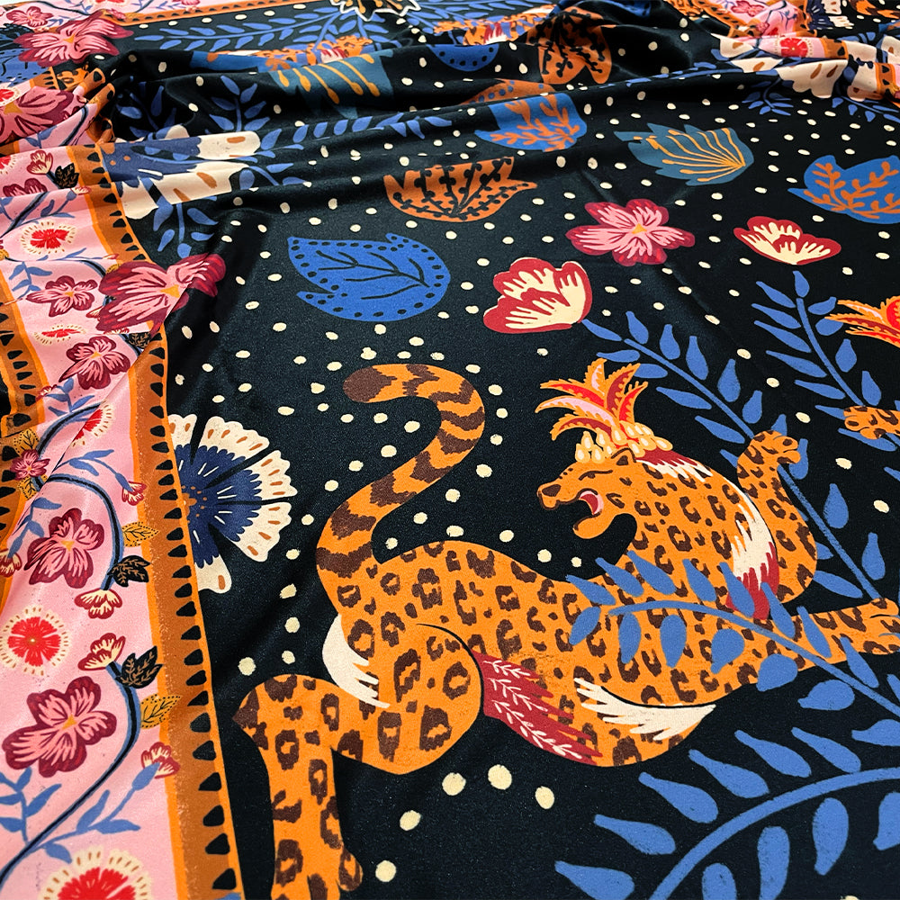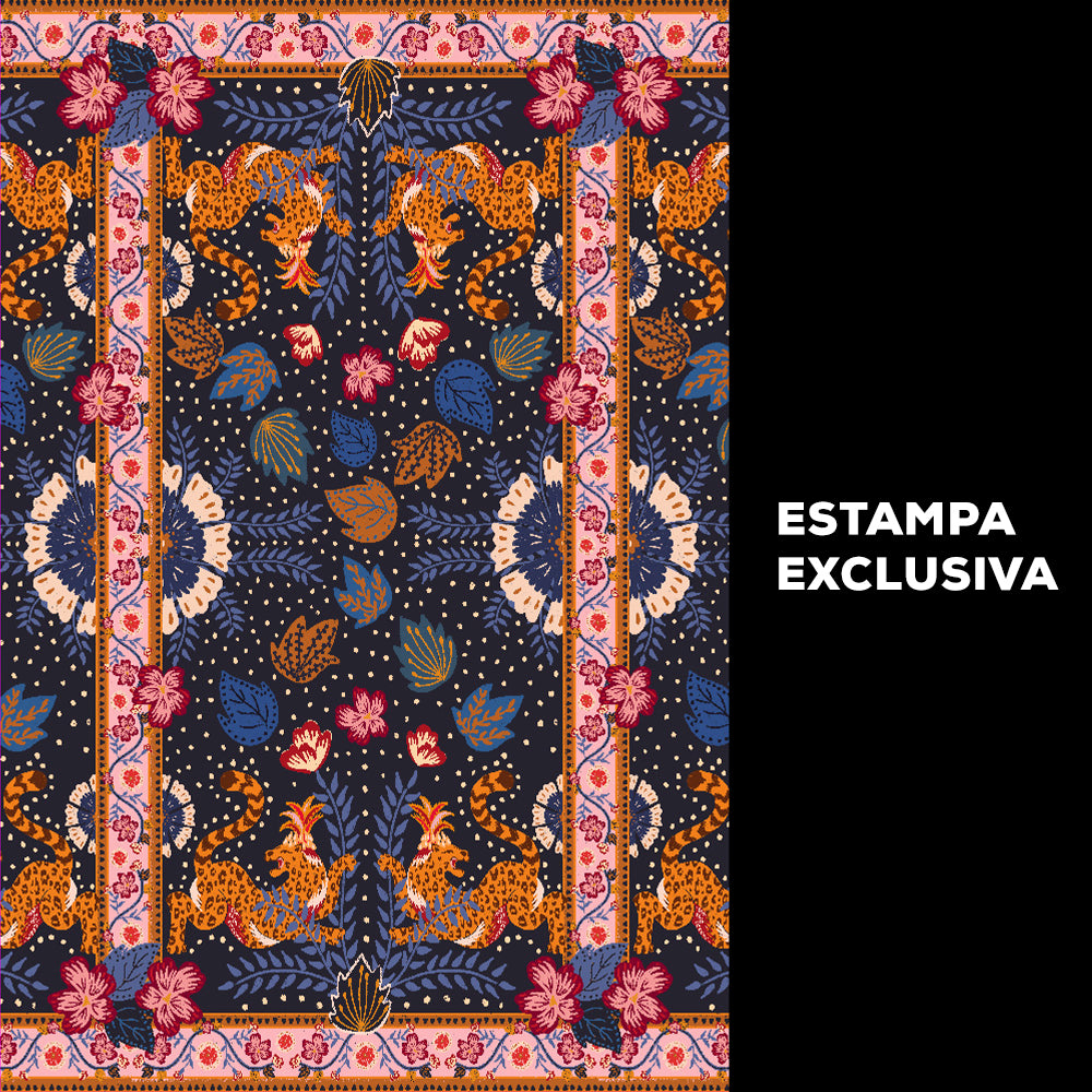 Utilizamos tecidos com corte corrido, o que significa que o posicionamento dos elementos da estampa pode variar de peça para peça. Isso acontece porque, durante o processo de corte e costura, os desenhos são aplicados de forma contínua no rolo de tecido, o que torna cada item único e exclusivo.
