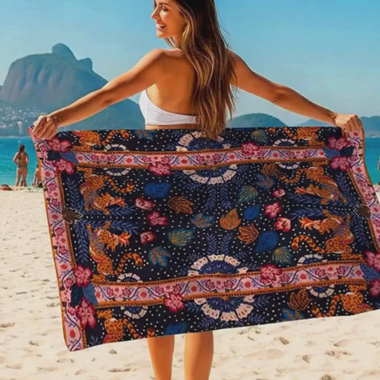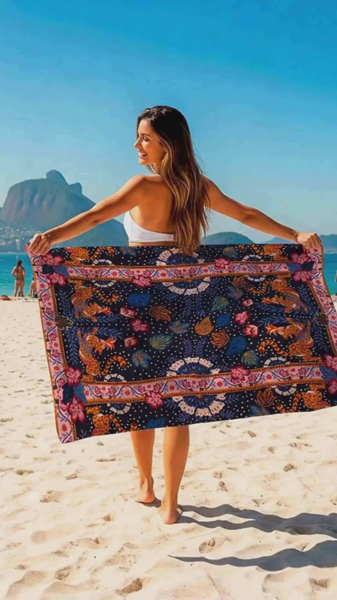 Confeccionada em tecido 100% poliéster de alta qualidade e com produção totalmente nacional, ela oferece leveza, conforto e versatilidade para uso na praia, piscina, piqueniques ou até como item decorativo.