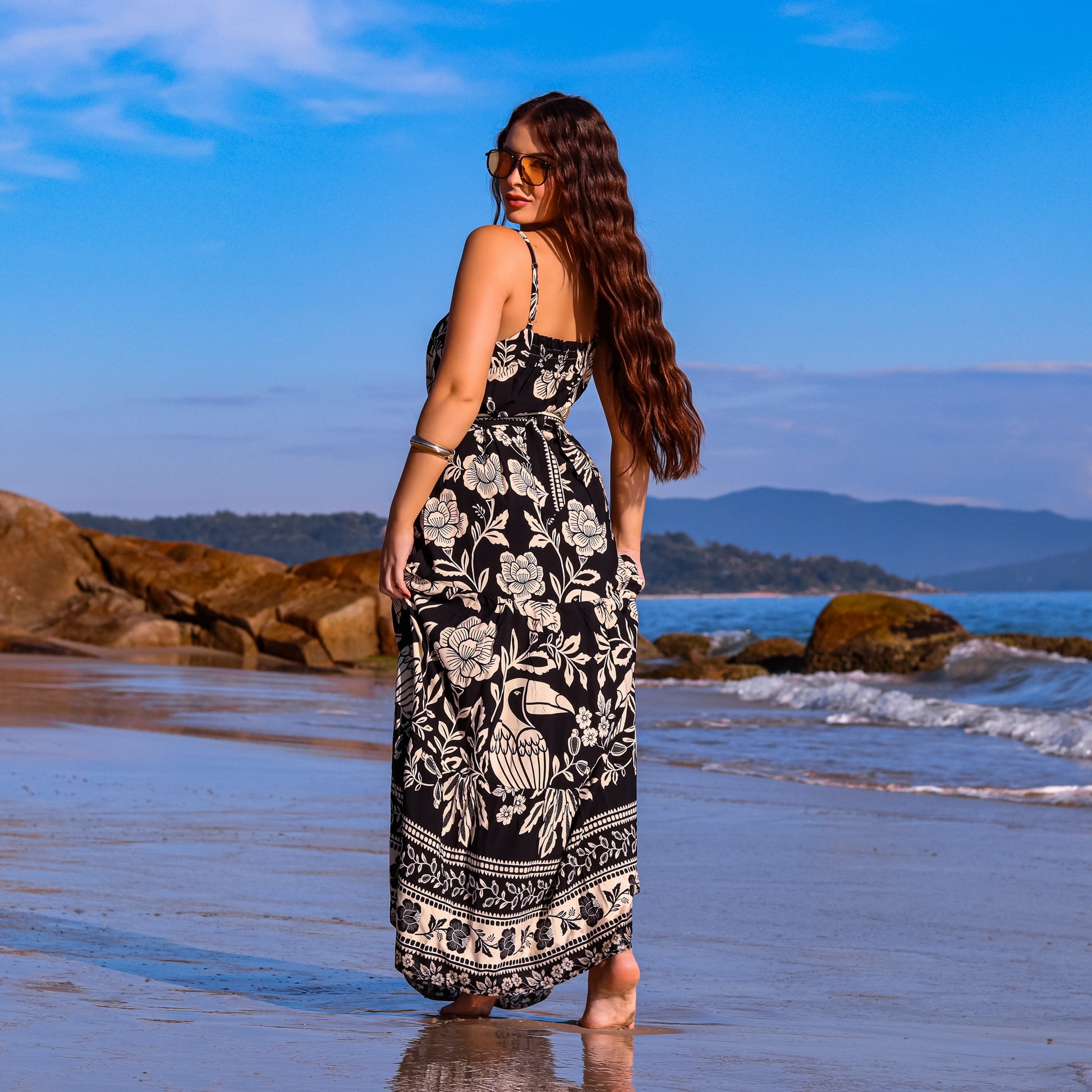 VESTIDO LONGO ESTAMPADO MAUMEE COM CINTO – DUBAI NIGHTS