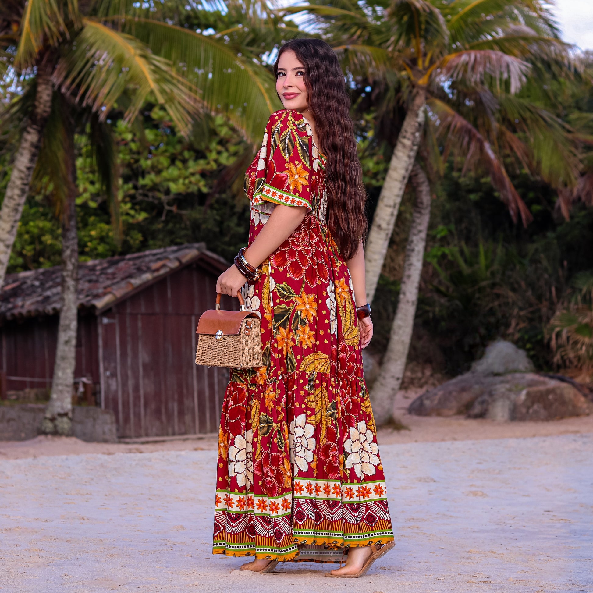 O lastex nas costas garante caimento ajustado e liberdade de movimento. Confeccionado em 100% viscose, proporciona frescor e toque suave à pele, ideal para dias quentes ou momentos que pedem leveza e estilo.