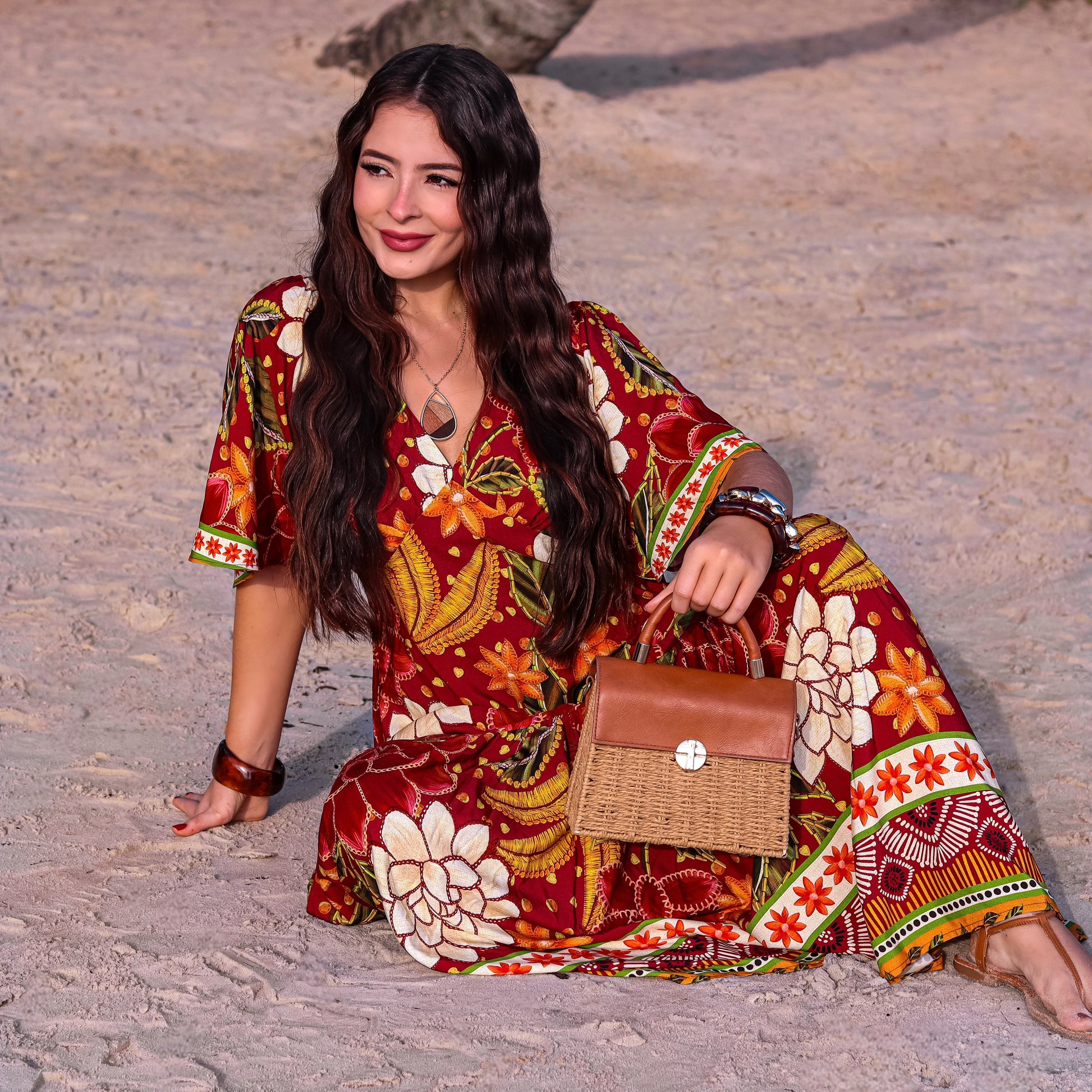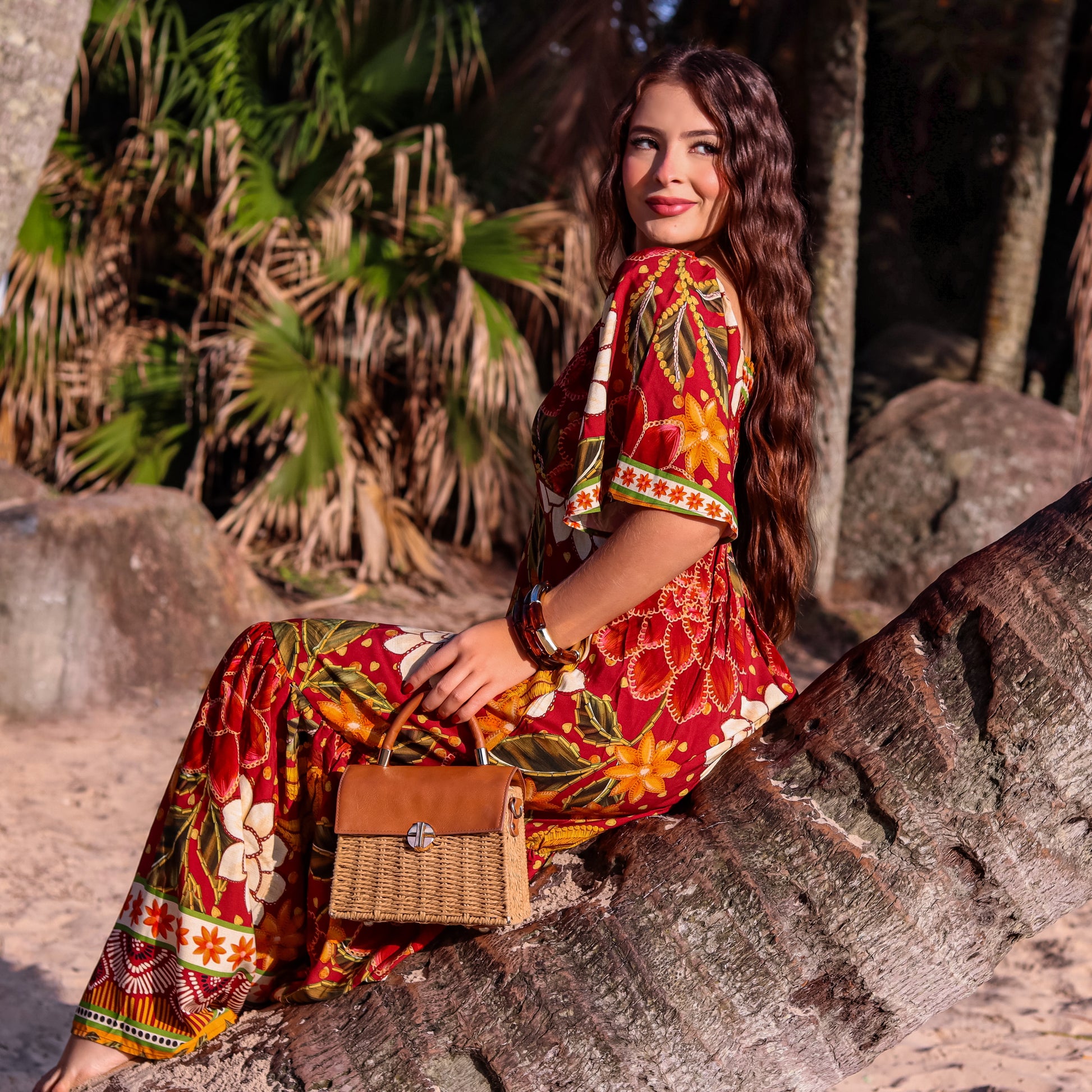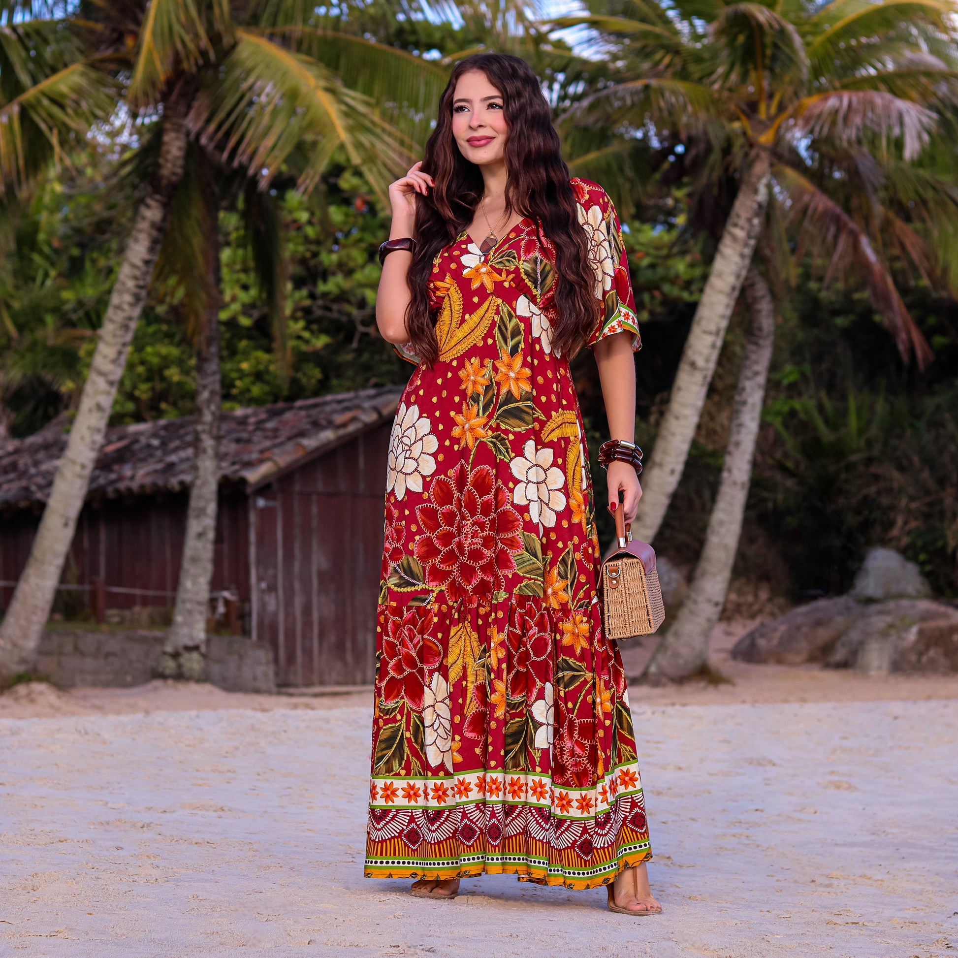 VESTIDO ESTAMPADO MAUMEE LONGO COM MANGA – OSAKA WINE