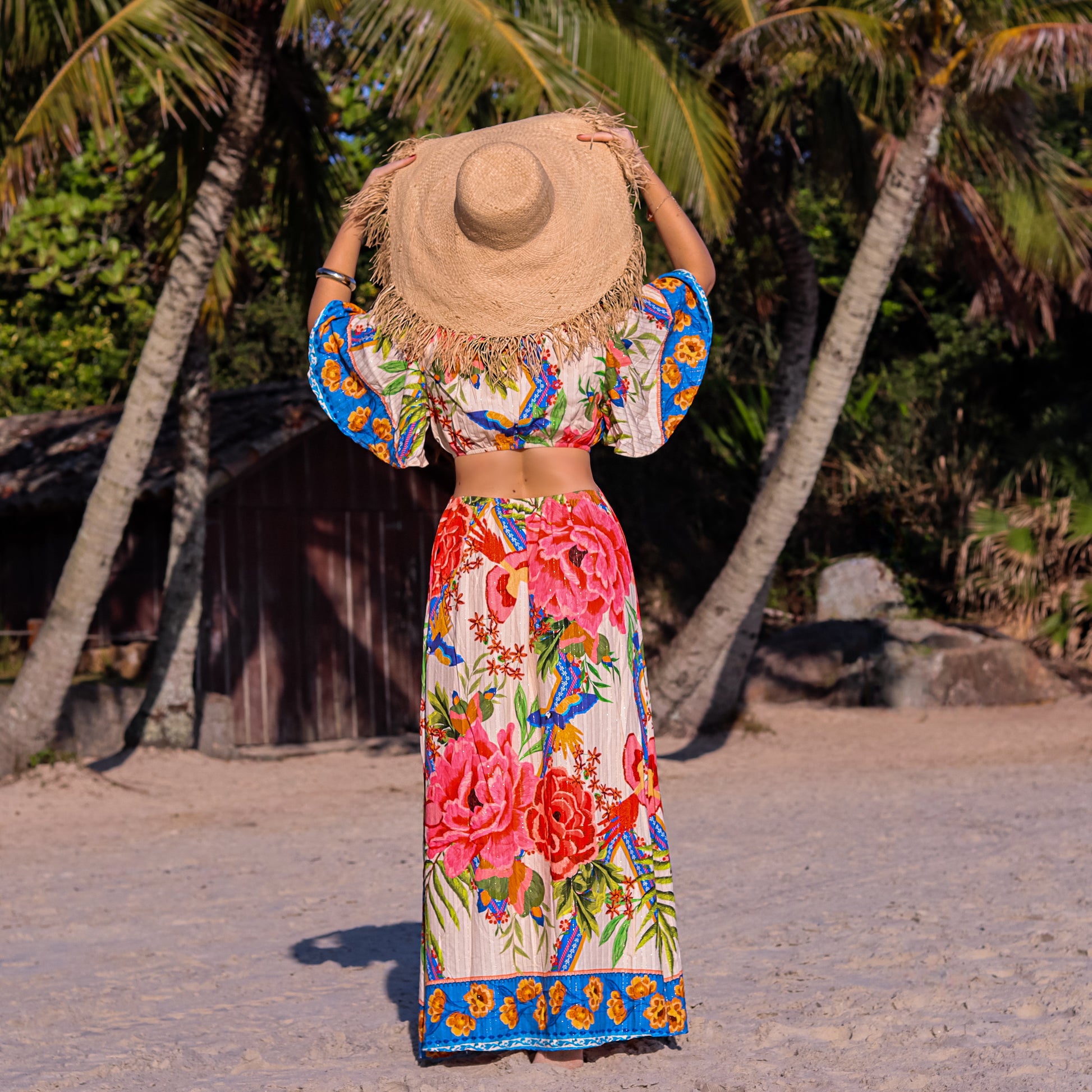 O recorte na cintura com elástico traz conforto e destaque à silhueta, enquanto o tecido de fibra natural garante frescor, fluidez e caimento perfeito.