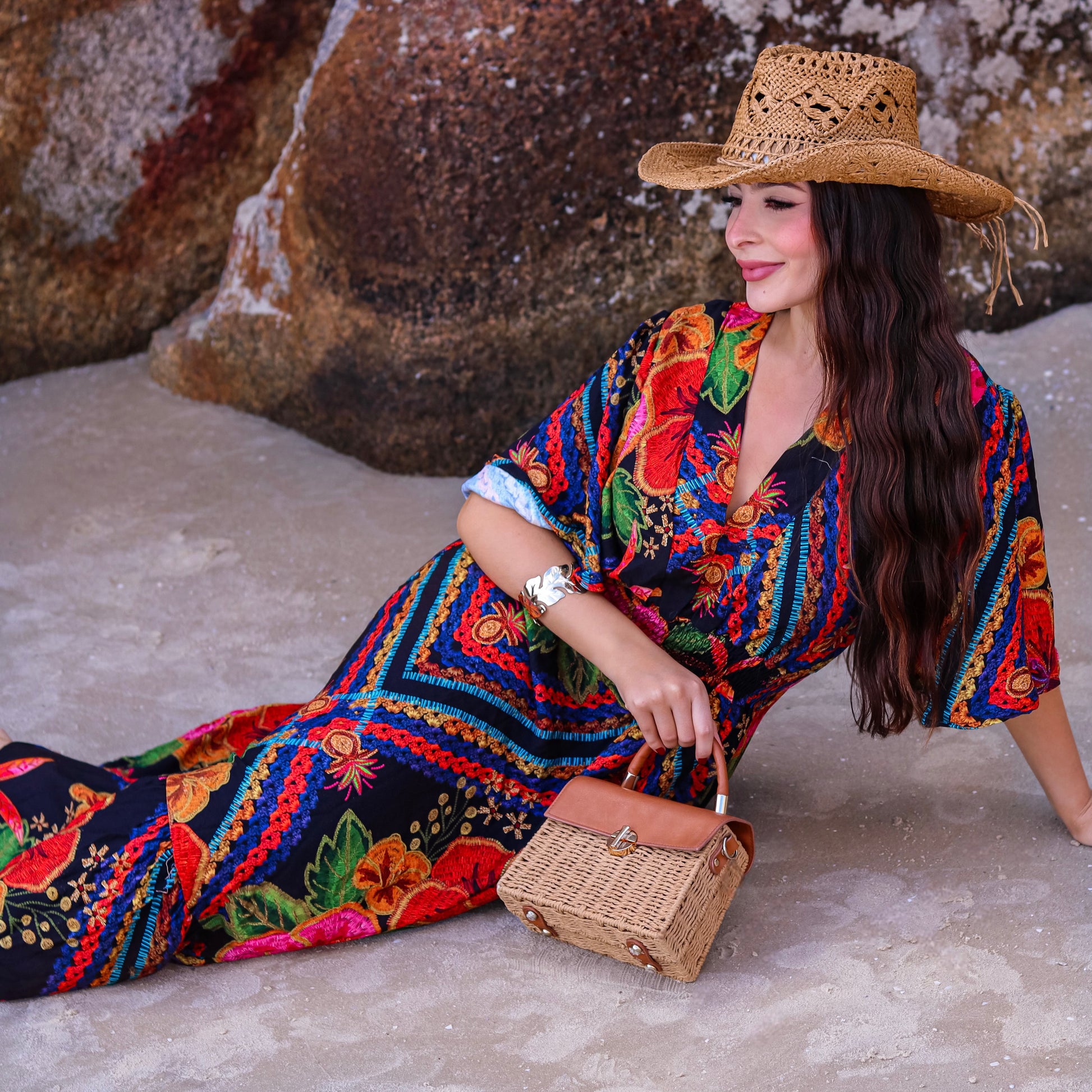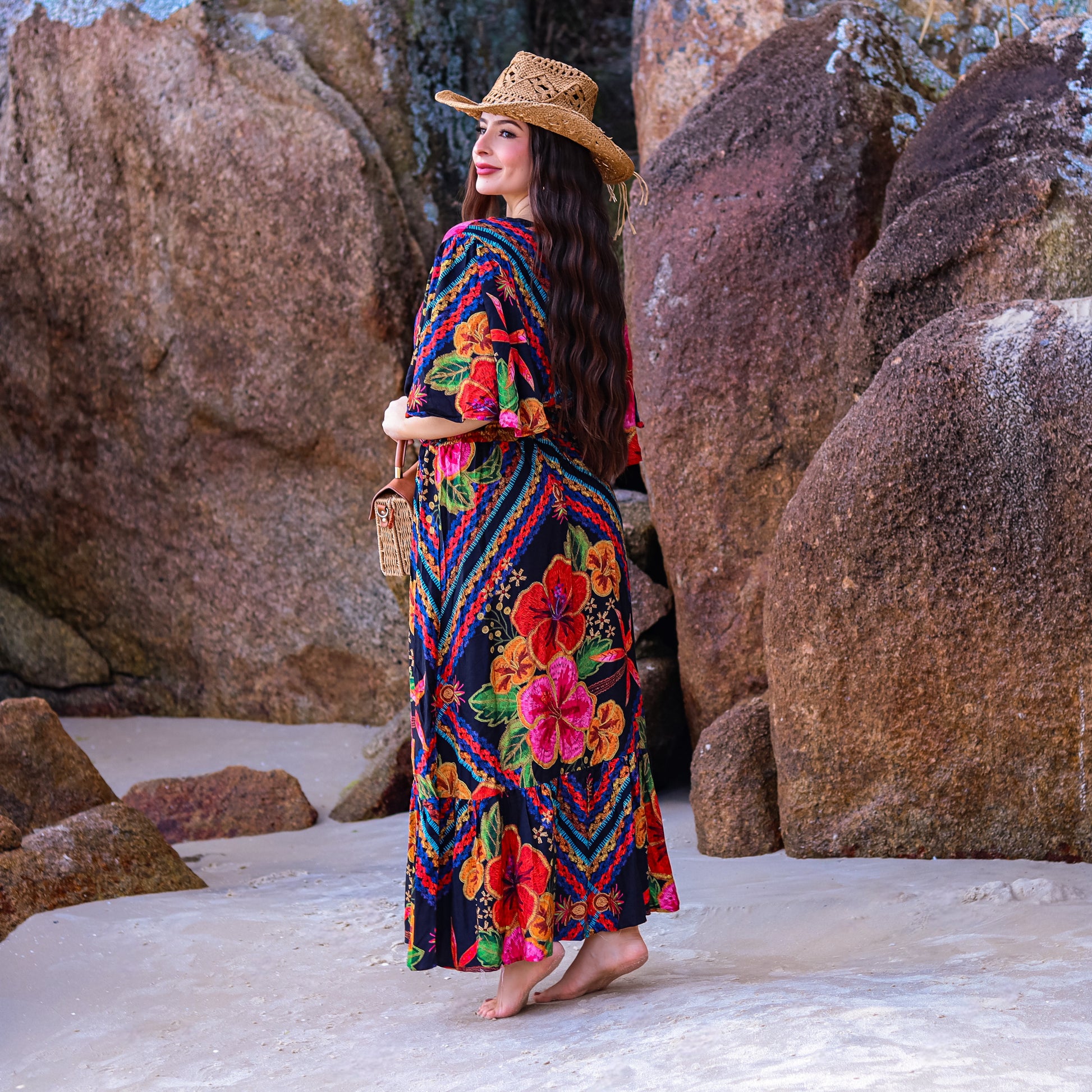 VESTIDO LONGO ESTAMPADO MAUMEE JOSEFINE COM DECOTE EM V
